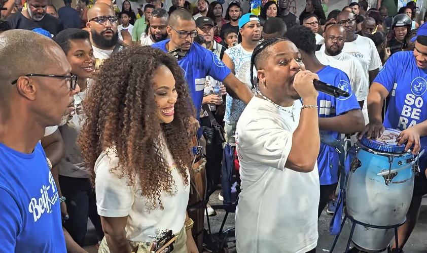 “Acho que aqui é um esquenta para a Sapucaí, porque é um Encontro de Quilombos, onde a Beija-Flor recebe várias coirmãs. O samba não tem essa rivalidade. Ficamos muito felizes em ver vários amigos fazendo um ensaio dessa proporção. Quem ganha com isso é o samba”, completou Claudinho.