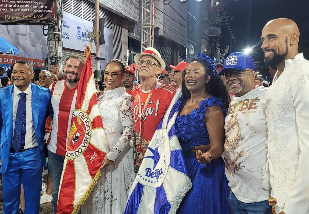“É espetacular. Uma alegria imensa estar aqui. Recebemos esse convite com muita honra, muito carinho. A Beija-Flor é uma escola multicampeã e que não só faz um trabalho competitivo forte há bastante tempo, como também institucional. Uma escola que tem na figura de seu Anísio uma referência muito grande, um pilar social e cultural. Assim como a Viradouro leva o nome de Niterói, a cidade de Nilópolis também é guiada e levada pela Beija-Flor. Nossos ensaios de rua foram excelentes. Agora, na virada do ano, é aquele ajuste final. O Carnaval é no início de fevereiro, um pouco mais curto esse período do que o último ciclo. A escola está 80% pronta. Nesta reta final de janeiro e fevereiro, vamos acertar o que falta para, sem dúvida alguma, buscar esse campeonato. É o que a escola está pensando. Agora, depende também da gente realizar esse trabalho bem feito para entrar nessa briga também”, disse.