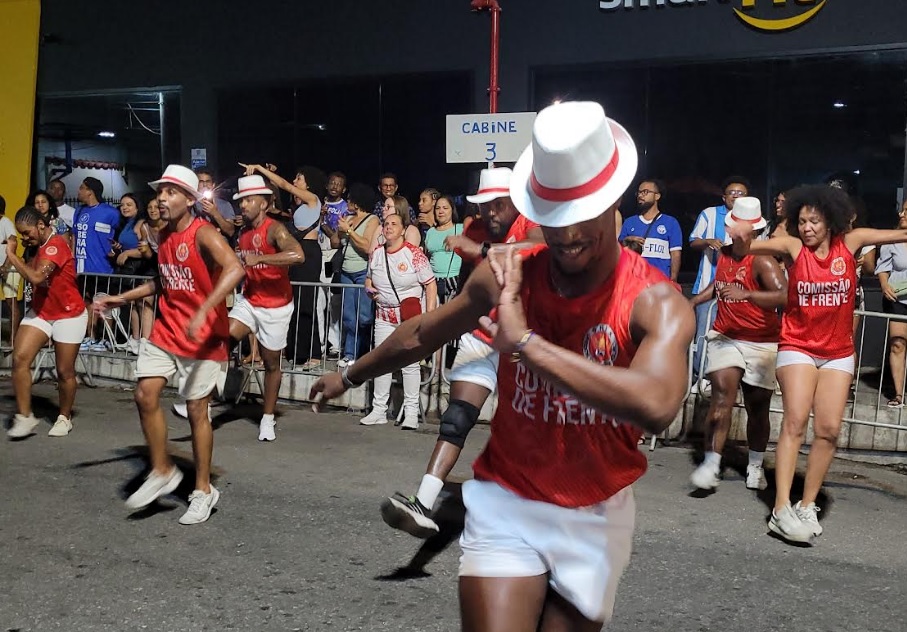 Entre os pontos que chamaram a atenção no Encontro de Quilombos, a comissão de frente da Viradouro, dos coreógrafos Rodrigo Negri e Priscilla Mota, apresentou uma proposta totalmente alinhada ao enredo. A coreografia evocou a trajetória do mestre Ciça, que iniciou sua caminhada no carnaval como passista, apostando em movimentos diretos e na valorização do samba individual de cada bailarino. O conjunto demonstrou forte entrosamento e leitura clara da proposta. A escola de Niterói ainda destacou-se pelas alas coreografadas ao longo do ensaio, com atenção especial para a ala do tamborzinho, que despertou grande reação do público.